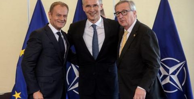 Την απόφασή τους για αναβάθμιση των σχέσεων, αλλά και το συντονισμό μεταξύ ΝΑΤΟ και ΕΕ, ανακοίνωσαν σε κοινές δηλώσεις τους, στη Σύνοδο του ΝΑΤΟ στη Βαρσοβία, ο πρόεδρος της Κομισιόν, Ζαν Κλοντ Γιούνκερ, ο πρόεδρος του Ευρωπαϊκού Συμβουλίου Ντόναλντ Τουσκ και ο γγ του ΝΑΤΟ Γενς Στόλτενμπεργκ.
