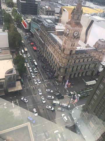 Σύμφωνα με την Αστυνομία της Βικτόριας, ο οδηγός εμπλέκεται σε περιστατικό με επίθεση με μαχαίρι που σημειώθηκε νωρίτερα σήμερα στο Γουίντσορ, ενώ πηγές αναφέρουν ότι επιτέθηκε με το αυτοκίνητό του στους πεζούς έπειτα από καβγά που είχε με τον αδελφό του.