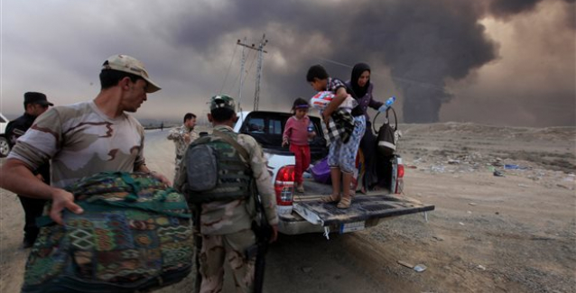 Πολίτες που εγκατέλειψαν τη Μοσούλη δήλωσαν ότι από τους βομβαρδισμούς των Ιρακινών και της Συμμαχίας καταστράφηκαν ολόκληρα κτίρια, θάβοντας κάτω από τα συντρίμμια πολλούς πολίτες. Αλλοι δήλωσαν ότι οι αντάρτες του Ισλαμικού Κράτους χρησιμοποιούν αμάχους ως ανθρώπινη ασπίδα, ενώ ανοίγουν πυρ εναντίον τους όταν αυτοί επιχειρούν να διαφύγουν.