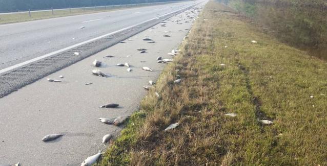 Η Πυροσβεστική Υπηρεσία της περιοχής Penderlea ανέβασε στο διαδίκτυο βίντεο-ντοκουμέντο, στο οποίο φαίνεται ο κεντρικός δρόμος i-40 γεμάτος με ψάρια, ορισμένα εκ των οποίων έχουν φάει... άλλα ψάρια, συνεχίζοντας τις... στάνταρ λειτουργίες και συνήθειές τους, ανεξάρτητα με το φαινόμενο που βρισκόταν σε εξέλιξη.