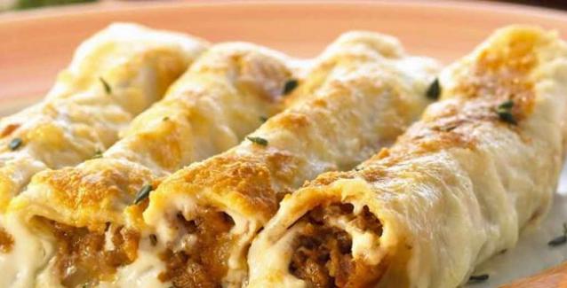 Όταν ο κιμάς είναι κρύος τότε παίρνουμε τα κανελόνια και τα γεμίζουμε με ένα κουταλάκι καλά ή με μια σακούλα κορνέ, τα στρώνουμε στο πυρέξ όλα και ρίχνουμε από πάνω την σάλτσα και στο φούρνο σκεπασμένα με αλουμινόχαρτο για 20 λεπτά στους 180 βαθμούς.