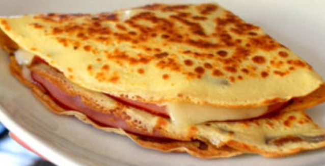 Στη συνέχεια αφού έχουν ετοιμαστεί οι κρέπες, τις γεμίζετε με τυρί κασέρι τριμμένο, ζαμπόν σε φέτες, μανιτάρια και τυλίγετε τις κρέπες σαν κύλινδρο.