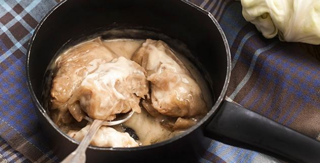 Βυθίζουμε το λάχανο με την τρύπα που άνοιξε το κοτσάνι προς τα κάτω σε μια κατσαρόλα νερό που βράζει