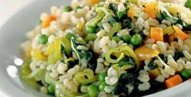 Καθαρίζετε τα λαχανικά και τα κόβετε σε φέτες. Βάζετε στο τηγάνι το βούτυρο να κάψει μαζί με το φύλλο φασκόμηλου και τσιγαρίζετε τα λαχανικά. Βράζετε το ρύζι χωριστά, το στραγγίζετε καλά στο σουρωτήρι και το προσθέτετε στα λαχανικά. Έπειτα λιώνετε την κρέμα γάλακτος, ρίχνετε την τριμμένη κεφαλογραβιέρα και περιχύνετε.