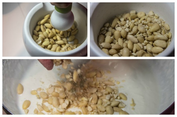 100 γρ. αμύγδαλα καθαρισμένα και ελαφρά σπασμένα στο γουδί
