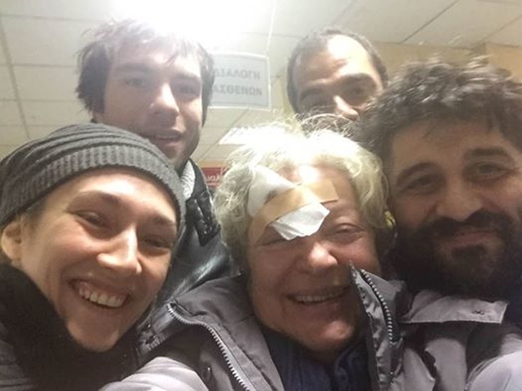 Η τραγουδίστρια έπεσε και χτύπησε στο μέτωπό της. Αφού μεταφέρθηκε στο νοσοκομείο και την είδαν οι γιατροί έβγαλε μια selfie με τους συναδέλφους της και έγραψε στο facebook: