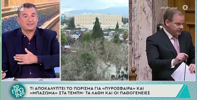 Ο παρουσιαστής του ΑΝΤ1, εμφανώς εκνευρισμένος, κατηγόρησε τον πολιτικό της Νέας Δημοκρατίας ότι διέπραξε τεράστιο λάθος επιστρέφοντας στην πολιτική σκηνή, παρά τις ευθύνες που φέρει για το δυστύχημα. Με έντονο ύφος, τόνισε πως η στάση του προκαλεί την κοινωνία, ειδικά τις οικογένειες των θυμάτων, που ακόμα αναζητούν δικαίωση.