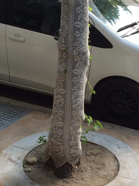 Εκτός αστείων πάντως, το δέντρο θα μπορούσε κάλλιστα να ενταχθεί στο «κίνημα» «Yarn Bombing», που θεωρείται από πολλούς ως «παρακλάδι» του γκράφιτι και θέλει δέντρα, μνημεία και δημόσιους χώρους να «καλύπτονται» από πλεκτά ή κεντήματα.