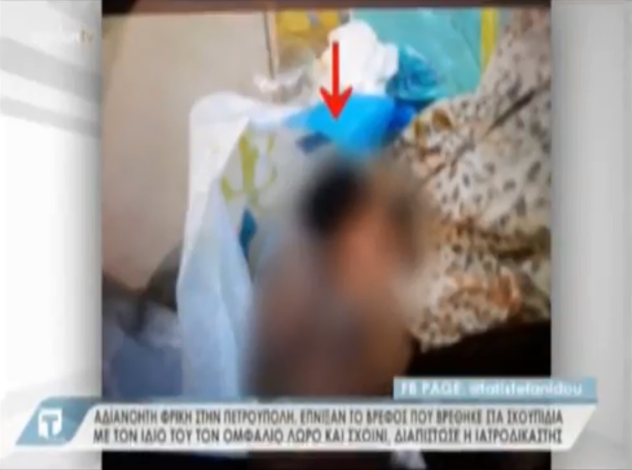 Μέσα σε ένα σεντόνι, μέσα στα αίματα και τυλιγμένο ακόμη με τον ομφάλιο λώρο, ένα νεογέννητο βρέφος. Ένα παιδάκι που δεν πρόλαβε να δει το φως της ζωής…