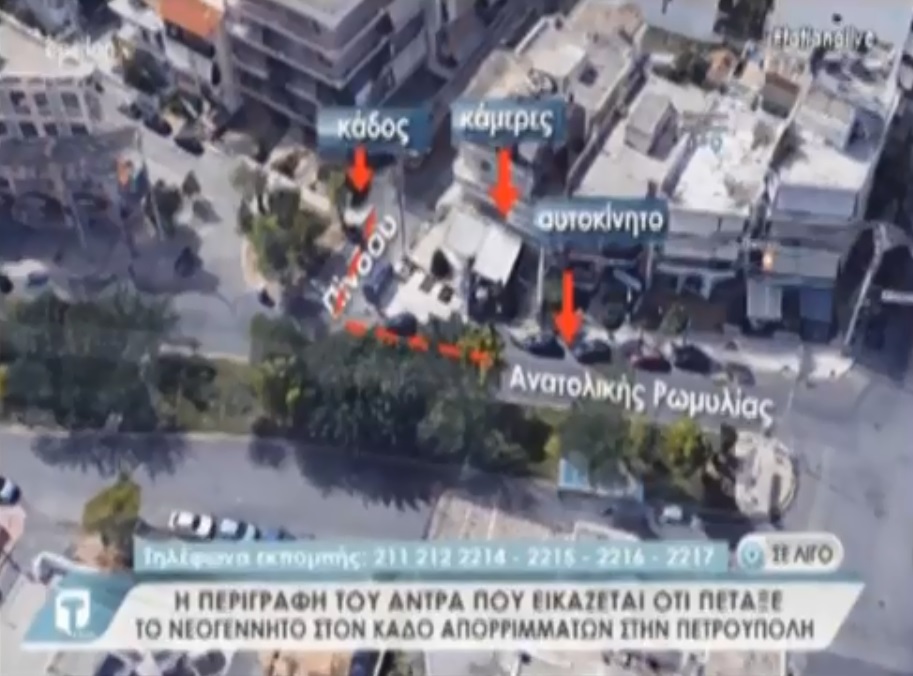Συγκεκριμένα, απέναντι από τον κάδο όπου βρέθηκε το βρέφος, υπάρχει ένα κατάστημα. Ο καταστηματάρχης, περιγράφει στην εκπομπή όλα όσα κατέγραψαν οι κάμερες που έχει στην επιχείρησή του.