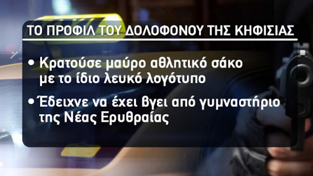 Είναι ηλικίας 26-30 χρόνων, έχει ύψος 1.70 με 1.80 , είναι λεπτός με μαύρα κοντά μαλλιά, έχει λευκό πρόσωπο, καστανά μάτια και απαλά χαρακτηριστικά. Φορούσε μαύρη αθλητική φόρμα με λευκό λογότυπο adidas στο φούτερ και λευκές ρίγες στα μανίκια και μαύρα αθλητικά παπούτσια. Κρατούσε μαύρο αθλητικό σάκο με λευκό λογότυπο της ίδιας εταιρίας και έδειχνε να έχει βγει από γυμναστήριο της Νέας Ερυθραίας. Μιλούσε καθαρά τα ελληνικά και έδειχνε κάτοικος Βορείων Προαστίων.