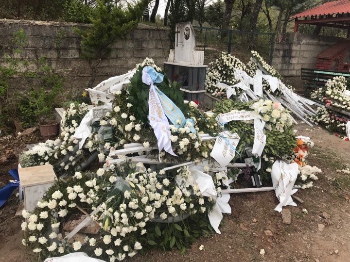 Η κατάθεση στεφάνου ήταν το λίγοτερο που θα μπορούσαν να φέρουν ως τιμή στον ήρωα Σμηναγό και τα λουλούδια τους με την επιγραφή : “Τα αδέλφια του Σμηναγού Ηλιάκη” ξεχώρισαν στο κοιμητήριο κι έκαναν πολλά μάτια να δακρίσουν.