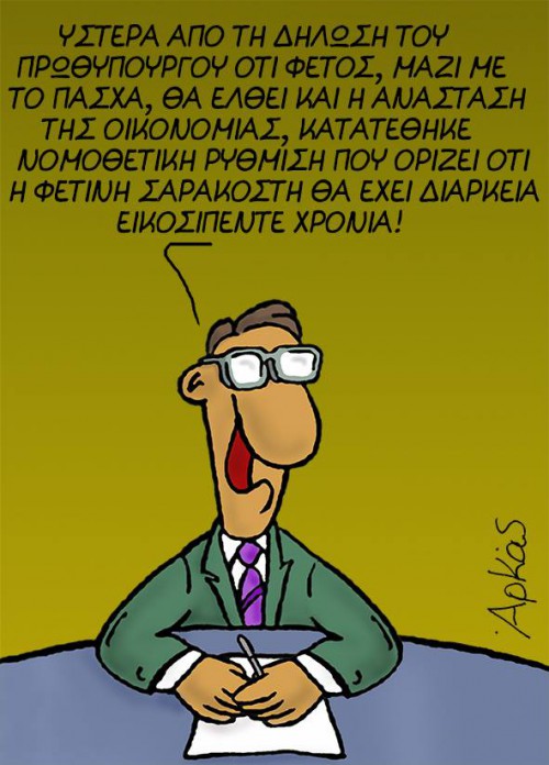 Ερωτηθείς για την οικονομία είχε πει πως τα κρίσιμα νομοσχέδια θα περάσουν μέσα στο Μάρτιο. «Το Πάσχα θα έρθει μαζί με την ανάσταση της ελληνικής οικονομίας» είχε τονίσει χαρακτηριστικά.