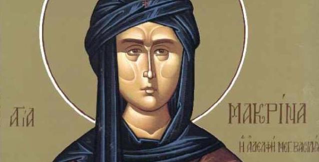 Τιμούμε, επίσης, τη μνήμη της οσίας Μακρίνας, κόρης των αγίων Βασιλείου και Εμμελείας και αδελφής των, επίσης Αγίων της Εκκλησίας, Βασιλείου του Μεγάλου, Ναυκρατίου, Πέτρου Σεβαστείας και Γρηγορίου Νύσσης.