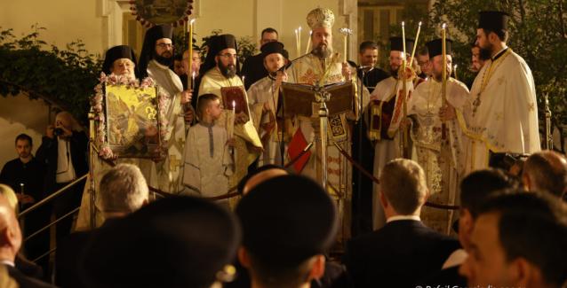 Της ακολουθίας της Παννυχίδος, του Όρθρου και της Αναστάσιμης Θείας Λειτουργίας προεξήρχε ο Παναγιώτατος Μητροπολίτης Θεσσαλονίκης κ. Φιλόθεος, πλαισιωμένος από τους ιερείς και τους ιεροδιακόνους της Ι. Μητροπόλεως.