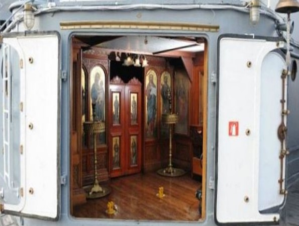 Aξίζει να σημειώσουμε ότι ο ιερέας του είχε πολύ σημαντικό έργο. Στις επιχειρήσεις ήτανε στα λεβιτοστάσια και στα μηχανοστάσια και εμψύχωνε τον κόσμο και όταν καθόταν το καράβι σε λιμάνι ήρεμο έπαιρνε τα ναυτάκια που στο μεγαλύτερο ποσοστό ήταν αναλφάβητα και τους μάθαινε γραφή. Μπορούμε να πούμε ότι ο ιερέας είναι μια εμβληματική παρουσία σε όλη την ιστορία του πλοίου και μπορούμε να πούμε αβίαστα ότι ο,τι έχει κάνει αυτό το πλοίο στην ιστορία του συνυπάρχει το ηρωικό και το θείο.