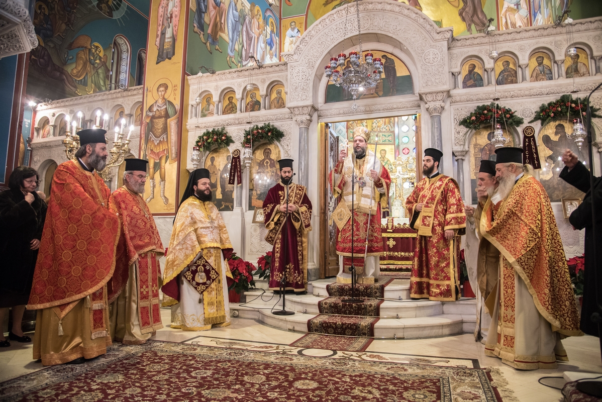 Τη Δευτέρα 25 Δεκεμβρίου 2017 εψάλη ο Όρθρος και στη συνέχεια τελέσθηκε η Πανηγυρική Δισαρχιερατική Θεία Λειτουργία, ιερουργούντος του Σεβασμιωτάτου Μητροπολίτου πρ. Νέας Ιωνίας και Φιλαδελφείας κ. Κωνσταντίνου και συνιεργουργούντος του Σεβασμιωτάτου Μητροπολίτου Νέας Ιωνίας και Φιλαδελφείας κ. Γαβριήλ, τη συμμετοχή Κληρικών της Ιεράς Μητροπόλεως και την παρουσία τοπικών αρχόντων, εκπροσώπων μικρασιατικών συλλόγων, πολιτιστικών φορέων και πλήθους πιστών.