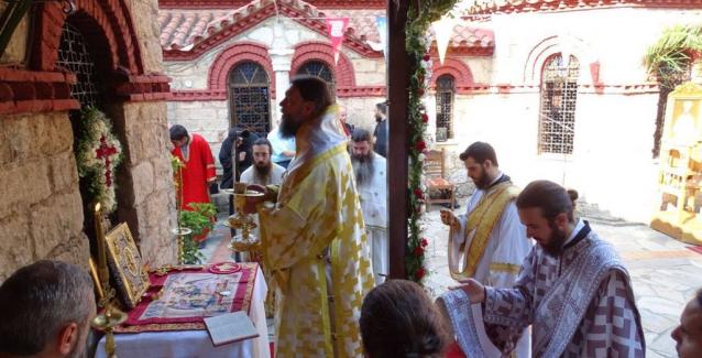 Την κυριώνυμο ημέρα της εορτής, Δευτέρα 27 Αυγούστου, ο Σεβασμιώτατος Μητροπολίτης κ. Γαβριήλ χοροστάτησε στην Ακολουθία του Όρθρου και στη συνέχεια τέλεσε την Πανηγυρική Θεία Λειτουργία, πλαισιούμενος από κληρικούς της Ιεράς Μητροπόλεως.