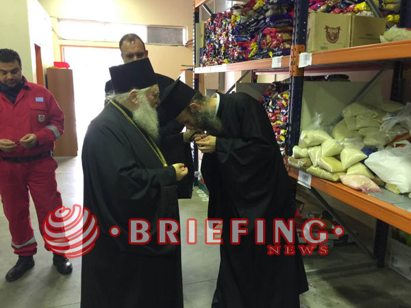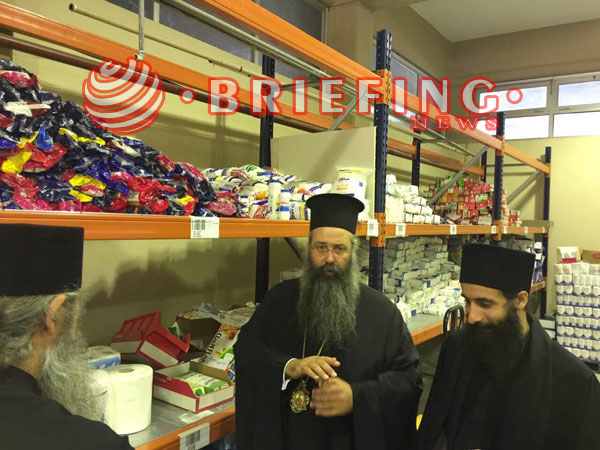Αμέσως μετά συνέχισαν την επίσκεψη τους στο κοινωνικό παντωπολείο το οποίο η Ιερά Μεγίστη Μονή Βατοπαιδίου στηρίζει με τρόφιμα για να βοηθούν άπορες οικογένειες μεσα στην οικονομική κρίση που μαστίζει την χώρα.