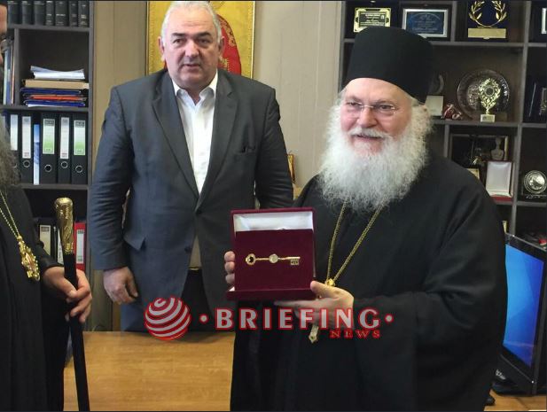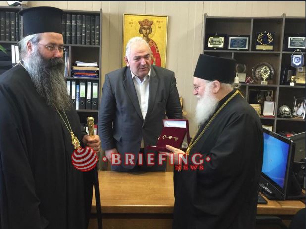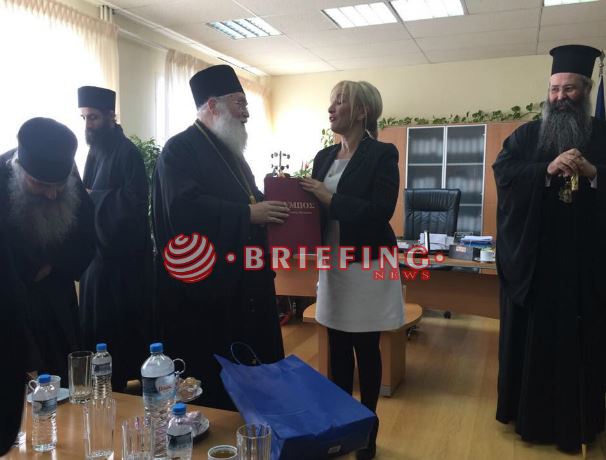 Προηγουμένως ο μητροπολίτης Κατερίνης Πιερίας Κιτρους και Πλαταμώνος κ Γεώργιος μαζι με τον Γέροντα Εφραίμ και την συνοδεία του επισκέφθηκαν και την αντιπεριφερειάρχη Κατερίνης.