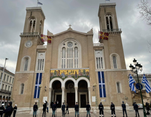 Στον Καθεδρικό Ναό της Αθήνας τελείται η καθιερωμένη Συνοδική Θεία Λειτουργία με την τήρηση όλων των προβλεπόμενων υγειονομικών διατάξεων. Έξω από τον ναό βρίσκεται τιμητικό άγημα. Στις 9.30 το πρωί έφθασε στον ναό η Πρόεδρος της Δημοκρατίας Αικατερίνη Σακελλαροπούλου, την οποία υποδέχθηκε ο Μητροπολίτης Νέας Ιωνίας και Φιλαδελφείας κ. Γαβριήλ