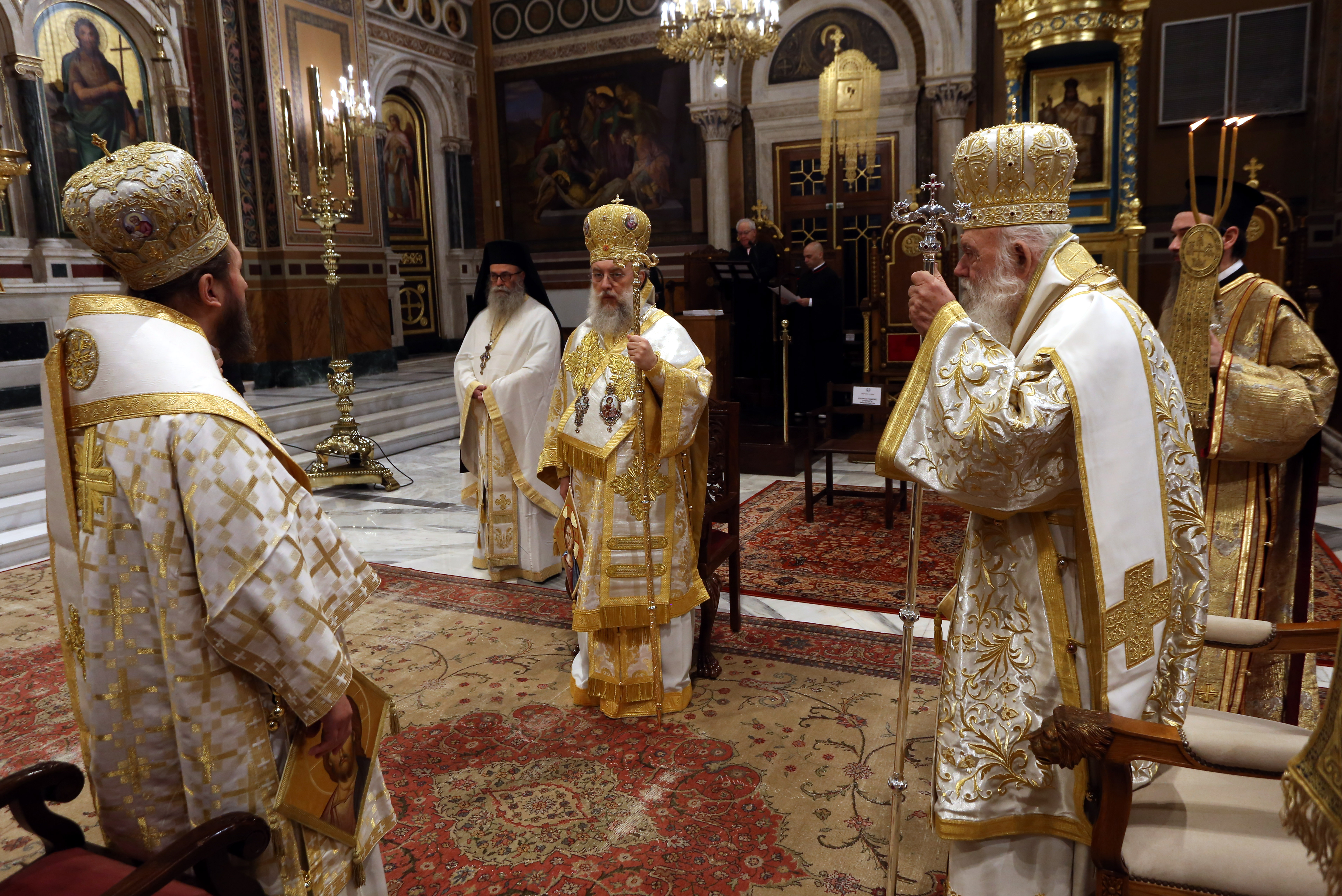 Προεξάρχει ο Μακαριώτατος Αρχιεπίσκοπος Αθηνών και πάσης Ελλάδος κ. Ιερώνυμος και συλλειτουργούν οι Συνοδικοί Μητροπολίτες Κηφισίας, Αμαρουσίου και Ωρωπού κ. Κύριλλος και ο Γλυφάδας, Ελληνικού, Βούλας, Βουλιαγμένης και Βάρης κ. Αντώνιος, καθώς και δύο ιερείς και διάκονοι. Τελετάρχης είναι ο Μητροπολίτης Νέας Ιωνίας και Φιλαδελφείας κ. Γαβριήλ.