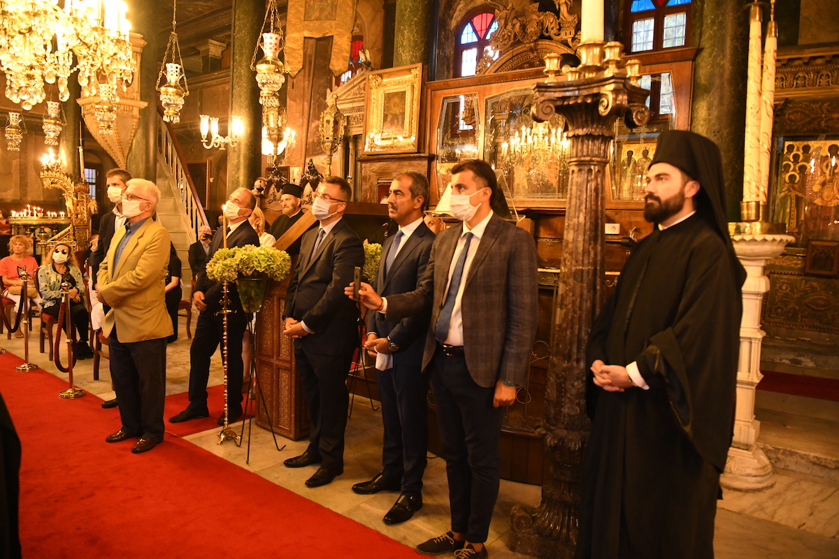Ολοκληρώνοντας την ομιλία του εξέφρασε την ευαρέσκειά του προς τον Σεβ. Μητροπολίτη Μυριοφύτου και Περιστάσεως κ. Ειρηναίο, Επόπτη της Περιφερείας Βοσπόρου, στον Ιερατικώς Προϊστάμενο της Κοινότητας, Αρχιμ. Αγαθάγγελο, Αρχειοφύλακα των Πατριαρχείων, ο οποίος τέλεσε και την Ακολουθία, και προς τον Άρχοντα Μ. Χαρτοφύλακα κ. Παντελεήμονα Βίγκα, Πρόεδρο της Εφοροεπιτροπής του Ι.Ν. Παναγίας Κουμαριώτισσας, για το έργο που πραγματοποιούν, αλλά και για τις πολιτιστικές δράσεις που διοργανώνουν κάθε χρόνο στην Κοινότητα.