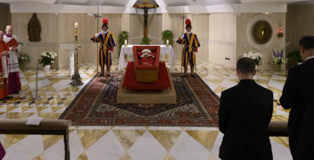 Το Σάββατο 26 Απριλίου στις 10 το πρωί τοπική ώρα θα πραγματοποιηθεί η κηδεία του Πάπα Φραγκίσκου, σύμφωνα με το Βατικανό. Επιπλέον, η σορός του Πάπα Φραγκίσκου θα μεταφερθεί στη Βασιλική του Αγίου Πέτρου στις 9 το πρωί τοπική ώρα την Τετάρτη όπου και θα παραμείνει εκεί μέχρι την κηδεία.