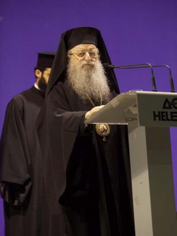 Χαιρετισμό στην εκδήλωση απήυθηνε ο οικείος Μητροπολίτης Θεσσαλονίκης κ. Άνθιμος ο οποίος είπε συγκινημένος: “ Αν μπορούσατε να έρθετε στο βήμα που βρίσκομαι τώρα να δείτε την εικόνα αυτού του κόσμου που βρίσκεται απόψε εδώ, τότε θα καταλαβαίνατε πως νιώθω αυτή τη στιγμή . Νιώθω συνεργάτης της αποψινής αυτής πανδαισίας και γεμίζει η ψυχή μου διότι μαζευτήκαμε εδώ για έναν ενάρετο μοναχό, για έναν εργάτη της προσευχής και της άσκησης, έναν υπέρμαχο της υπακοής”