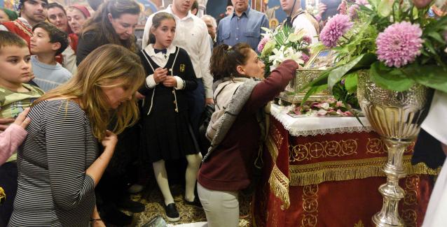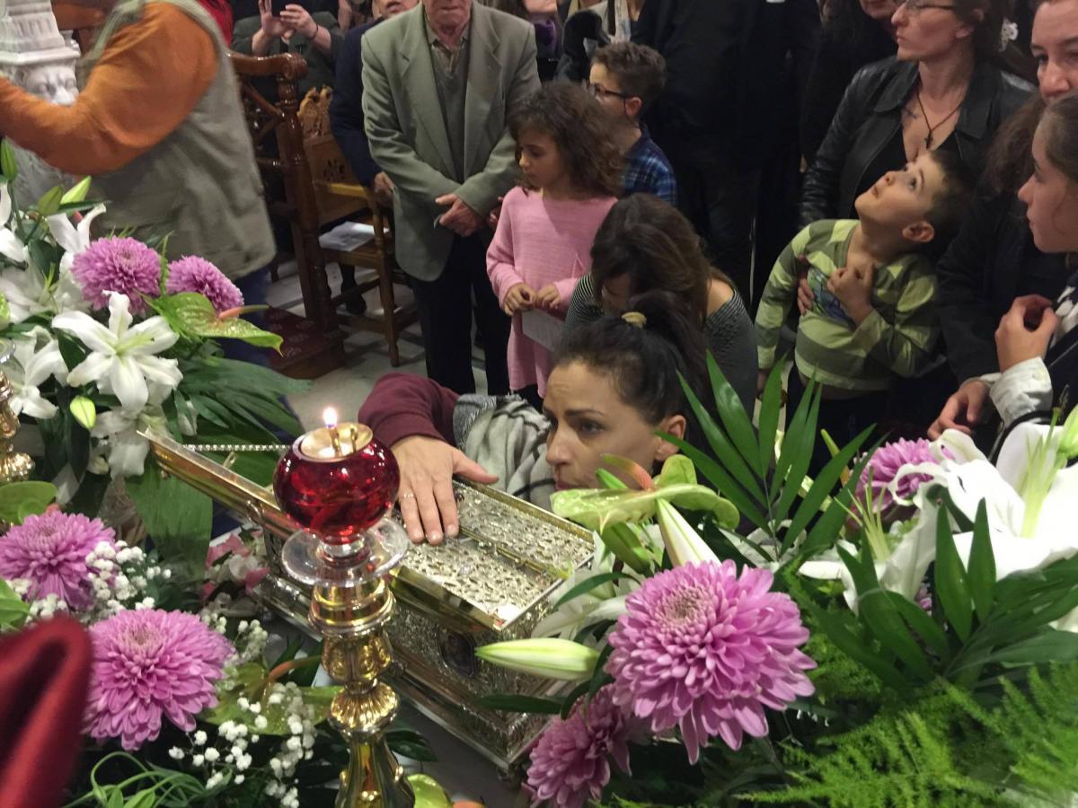 Με μάτια βουρκωμένα έμεινε για αρκετή ώρα να προσεύχεται με το χέρι πάντα απλωμένο στο θαυματουργό κειμήλιο.