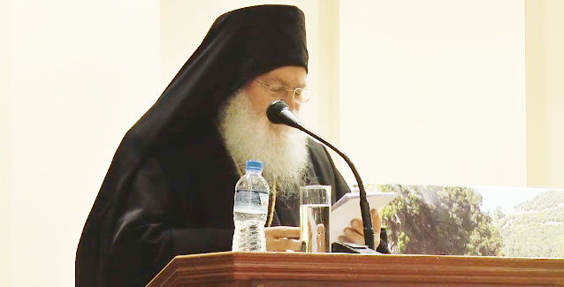 Ο Καθηγούμενος της Ι.Μ.Μ. Βατοπαιδίου Γέροντας Εφραίμ, μιλάει στην Διημερίδα που διοργανώθηκε στο Αγρίνιο, στις 28 και 29 Ιανουαρίου 2017, με θέμα «Ο Άγιος Κάλλιστος Πατριάρχης Κωνσταντινουπόλεως ο Καταφυγιώτης και η Ιερά Μονή Καταφυγίου».