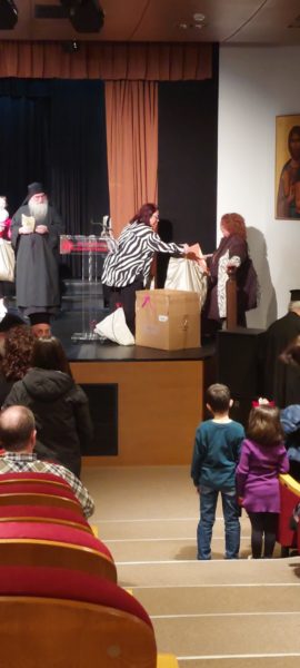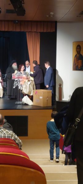 Ο εκπρόσωπος της Ι.Μ.Μ. Βατοπαιδίου Ιερομόναχος Γεώργιος, μετέφερε τις ευχές και ευλογίες του Πανοσιολογιωτάτου Καθηγουμέμνου Γέροντος Εφραίμ Βατοπαιδινού, τόνισε την ανάγκη στήριξης της πολύτεκνης οικογένειας και με λόγους αγάπης προς τα παιδιά και τους γονείς τους, ευχήθηκε η Υπεραγία Θεοτόκος να σκεπάζει τις πολύτεκνες οικογένειες και να τις ενισχύει σε κάθε βήμα της ζωής τους. Κατέληξε τονίζοντας ότι πρέπει να είμαστε θαρραλέοι και με την χάρη και ευλογία του Θεού θα ξεπεραστούν οι δυσκολίες.
