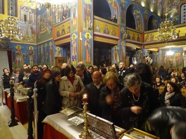 Στη συνέχεια τελέσθηκε πανηγυρική Ιερά Αγρυπνία, ιερουργούντος του Πανοσιολογιοτάτου Αρχιμανδρίτη κ. Χρυσοστόμου, αγιορείτου και τη συμμετοχή Κληρικών της Ιεράς Μητροπόλεως.