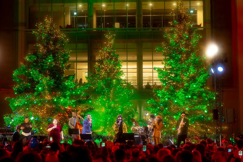 Στη συνέχεια, οι Mwenso and the Shakes, μια μπάντα από το Χάρλεμ της Νέας Υόρκης, ξεσήκωσαν το κοινό με ένα πληθωρικό πρόγραμμα με τίτλο “Afrofuturistic Christmas Wonderland” που συνδύαζε διαχρονικές χριστουγεννιάτικες επιτυχίες ("Santa Claus is coming to town", "Have yourself a merry little Christmas", "Rudolph the red nose reindeer", "Winter wonderland", "Silent night") με τζαζ, reggae και afrobeat ρυθμούς δίνοντας ένα εκρηκτικό αποτέλεσμα γεμάτο ενέργεια.