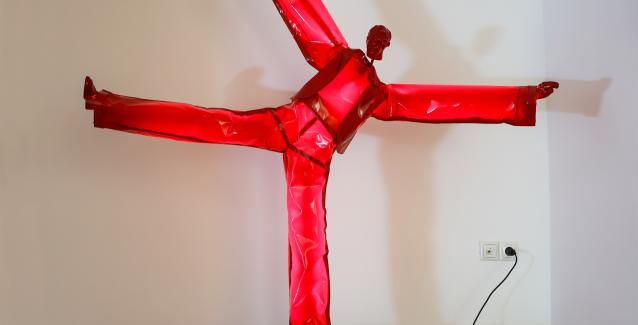 «Χαρούμενος άνθρωπος», 2010. Μέταλλο, πλαστικό ύφασμα και ηλεκτρικές λυχνίες. [ΝΙΚΟΣ ΚΟΚΚΑΛΙΑΣ]