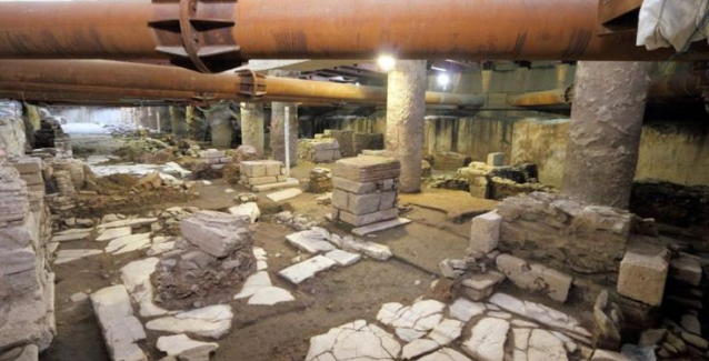 Στο φως ήρθαν υπολείμματα μιας μαρμαρόστρωτης πλατείας, περικλειόμενης από κυκλική σιγμοειδή στοά μετά από αρχαιολογική έρευνα στις εισόδους του υπό κατασκευή σταθμού Αγίας Σοφίας, για το μετρό της Θεσσαλονίκης.