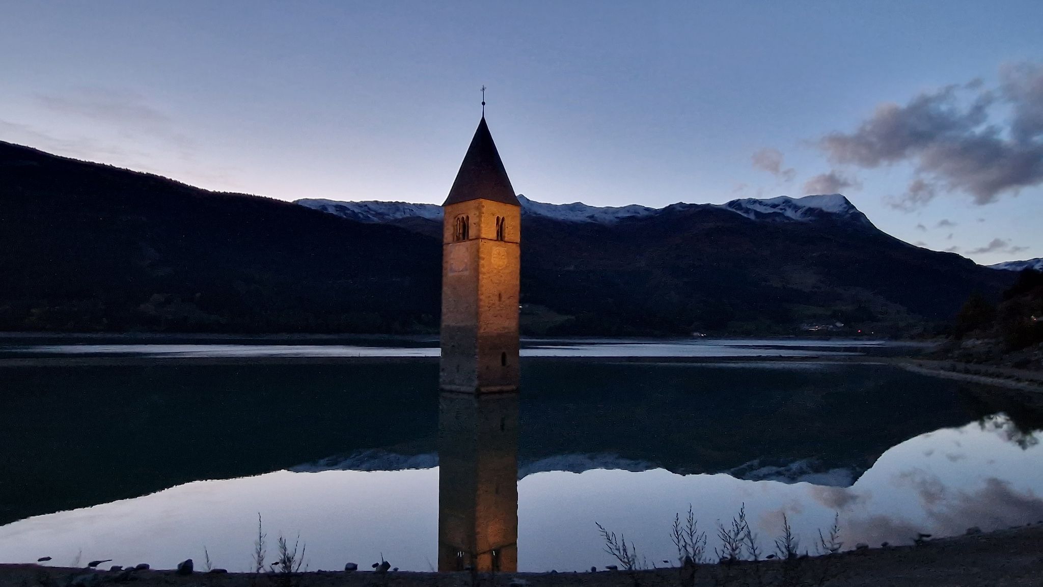 Το απόκοσμο ρωμανικό καμπαναριό του 14ου αιώνα ξεπροβάλλει μέσα από τα νερά της λίμνης Resia στο νότιο Τιρόλο, σαν μια άλλη Ατλαντίδα, προκαλώντας δέος σε όλους ανεξαιρέτως τους περαστικούς.