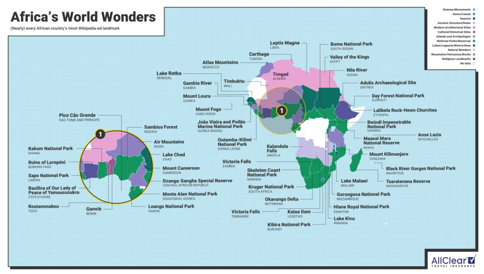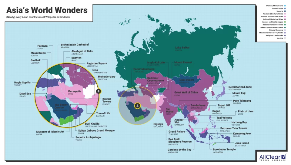 Η εταιρεία Αllcleartravel επιχειρεί να καταγράψει σε χάρτες τα πιο διάσημα σημεία και προορισμούς στον πλανήτη, αυτά που οι τουρίστες βάζουν ως στόχο να επισκεφθούν. Τοποθεσίες και αξιοθέατα που ιντριγκάρουν άπαντες.
