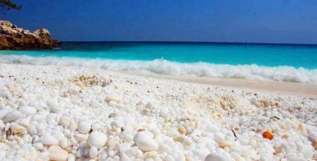 Το απόλυτο μαρμάρινο λευκό στα βότσαλα της παραλίας έρχεται σε πλήρη «συμφωνία» με το τιρκουάζ των νερών του Αιγαίου, δημιουργώντας ένα μαγικό τοπίο που κόβει την ανάσα.