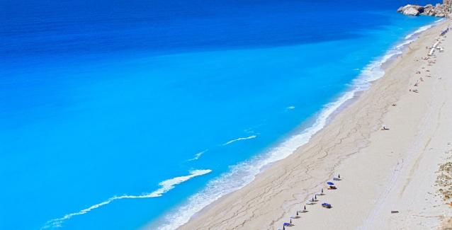 Εκεί που τα γαλαζοπράσινα νερά παίζουν με τη λευκή άμμο, στη δυτική πλευρά της Λευκάδας και σε απόσταση περίπου 15 χιλιομέτρων από την πόλη. Είναι μια τεράστια ακτή με λευκή άμμο και βότσαλα και φυσικά ατελείωτα γαλαζοπράσινα νερά.
