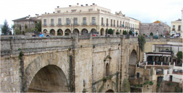 Με την πρώτη ματιά ο επισκέπτης νομίζει ότι βρίσκεται μέσα σε ένα φρούριο, ενώ οι κατοικίες φαντάζουν να κρέμονται από τα επιβλητικά βράχια και το μάτι χάνεται στο γκρεμό που βρίσκεται από κάτω! Γιατί το φαράγγι πάνω στο οποίο είναι χτισμένη η Ronda έχει ύψος πάνω από 100 μέτρα!