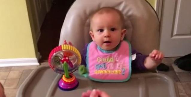 Το μωρό ανοίγει το στόμα του με λαχτάρα για να φάει αλλά όταν δοκιμάζει το φαγητό η αντίδραση του είναι απολαυστική.