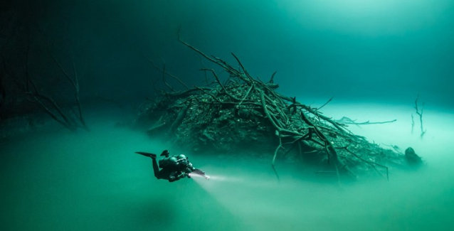 Κι όμως, αυτό ακριβώς βλέπουν οι δύτες που βουτούν στην περιοχή του Cenote Angelita του Μεξικού. Το ατμοσφαιρικό περιβάλλον της υποβρύχιας λίμνης φωτογράφισε ο Βρετανός φωτογράφος Tom St George που βούτηξε στο σπήλαιο για να αποτυπώσει στο φακό του τις εκπληκτικές εικόνες. Αυτό που μοιάζει με ομίχλη είναι υδρόθειο που σχηματίζεται στη μίξη του αλμυρού νερού με το γλυκό.