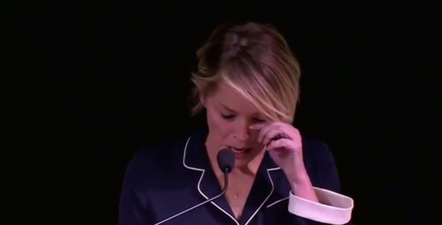 Ήταν αδύνατο να συγκρατήσει τα δάκρυά της η διάσημη ηθοποιός Σάρον Στόουν την ώρα, που διάβαζε από το βήμα συμποσίου στο Santa Clara University, την επιστολή γυναίκας, που είχε πέσει θύμα βιασμού, ενώ ήταν αναίσθητη, μέσα στο χώρο του πανεπιστημίου από πρώην κολυμβητή του Πανεπιστημίου Στάνφορντ.