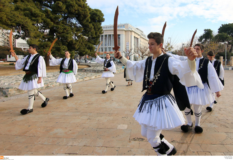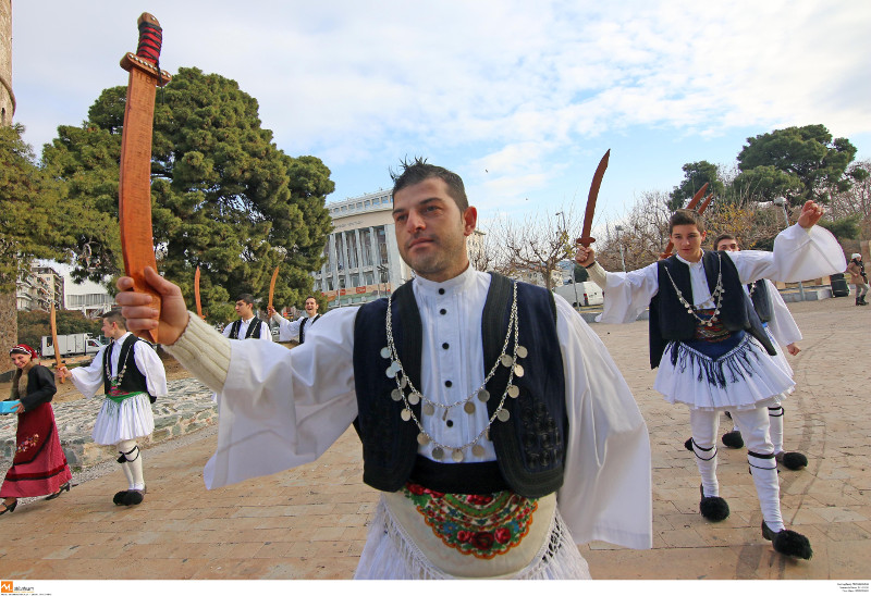 Οι «Φουστανελάδες» της Χαλάστρας... ξεσήκωσαν όσους βρέθηκαν στο κέντρο της Θεσσαλονίκης το πρωί του Σαββάτου.