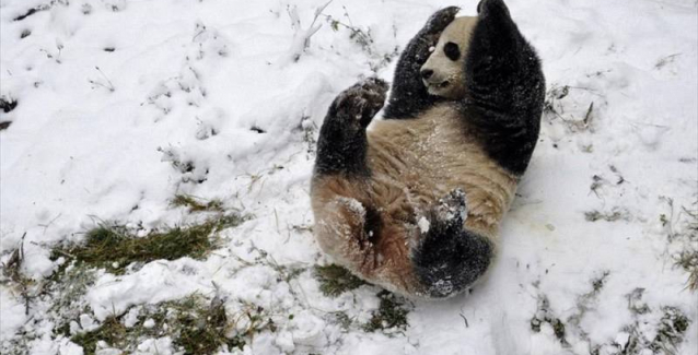 Απερίγραπτη ήταν η χαρά του Youyou, που μεταφέρθηκε πρόσφατα σε ψυχρότερο κλίμα, όταν είδε για πρώτη φορά σφοδρή χιονόπτωση.