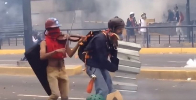 Η εικόνα ενός διαδηλωτή στην πρωτεύουσα της Βενεζουέλας, Καράκας, να παίζει βιολί μέσα στο απόλυτο χάος των συγκρούσεων με τις πάνοπλες δυνάμεις ασφαλείας έκανε τον γύρο του κόσμου και πλέον αποτελεί ένα σύμβολο απέναντι στον αυταρχισμό του προέδρου Νίκολας Μαδούρο.